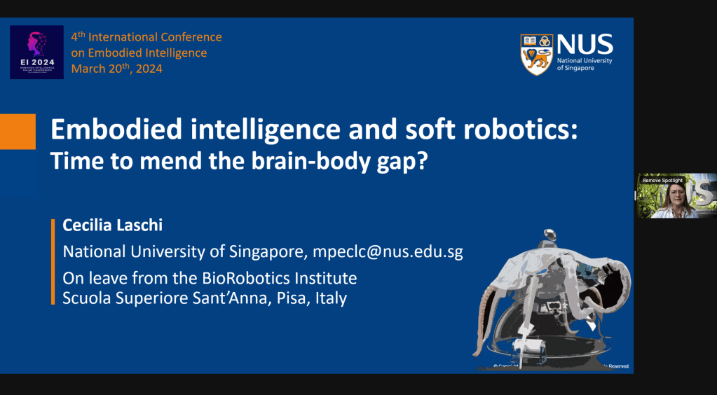 - Cecilia Laschi: EMBODIED INTELLIGENCE AND SOFT ROBOTICS: TIME TO MEND THE BRAIN-BODY GAP?