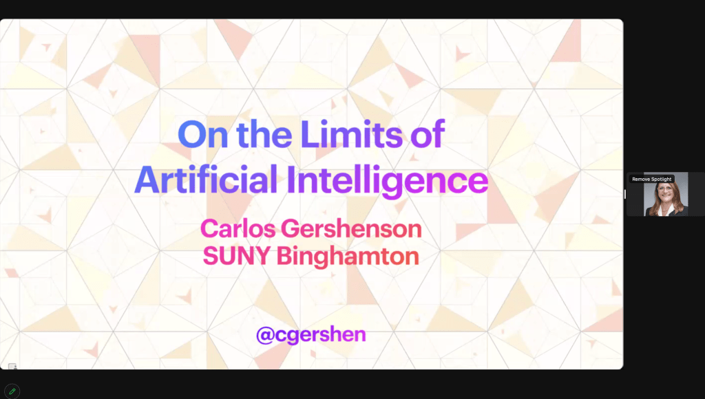 - Carlos Gershenson: ON THE LIMITS OF ARTIFICIAL INTELLIGENCE