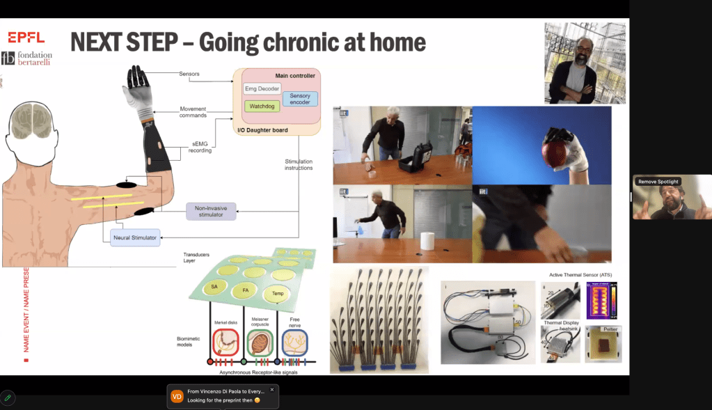 - Abstract: The field of neuro-prosthetics has witnessed remarkable technological advancements, shifting from simple technological solutions to more adaptable and life-like replacements. This presentation explores the innovative concept of ‘Soft Embodiment’ in the engineering of artificial limbs, focusing on the implementation of different flexible approaches to create systems that restore the natural movement, responsiveness, and sensation of human limbs. Through a series of case studies, we demonstrate the application of soft embodiment in the design of artificial limbs. We also address the challenges and future prospects in the field. This presentation underscores the transformative potential of soft embodiment in the field of prosthetics, offering insights into how this approach can enhance the quality of life for amputees and pave the way for the next generation of bioinspired, adaptive prosthetic limbs.