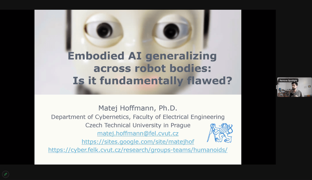 - Matej Hoffmann: EMBODIED AI GENERALIZING ACROSS ROBOT BODIES – IS IT FUNDAMENTALLY FLAWED?
