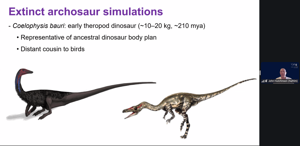 Abstract: The Triassic Period of the Mesozoic Era (about 252-200 million years ago) was a time of great flourishing of the Archosauria: the group containing living crocodiles and birds and all descendants of their most recent common ancestor, which therefore includes extinct groups such as pterosaurs (winged reptiles) and Mesozoic dinosaurs. Furthermore, the crocodile lineage (Pseudosuchia) was about as diverse as the dinosaur lineage was during this time. But a mass extinction at the end of the Triassic wiped out much of that diversity, leaving only the crocodile, pterosaur and dinosaur lineages to survive. Different hypotheses propose to explain this pattern. One is that the dinosaur group had some superior ways of walking and running relative to Pseudosuchia. My team has used a combination of experimental studies of extant Crocodylia and Aves with modelling and simulation of the biomechanics of locomotion in extant and extinct archosaurs from numerous groups, put into an evolutionary context. I will summarise this research to date, showing how computer models and simulations of living animals do fairly well at predicting locomotor abilities, boosting confidence in usage of these for extinct animals. Indeed, simulations of extinct archosaurs show how well different morphologies may have been able to perform different behaviours, and how these behaviours evolved. While it remains unclear why some groups survived the Triassic-Jurassic mass extinction, there is preliminary evidence supporting the conclusion that early dinosaurs had some locomotor advantages relative to other groups.