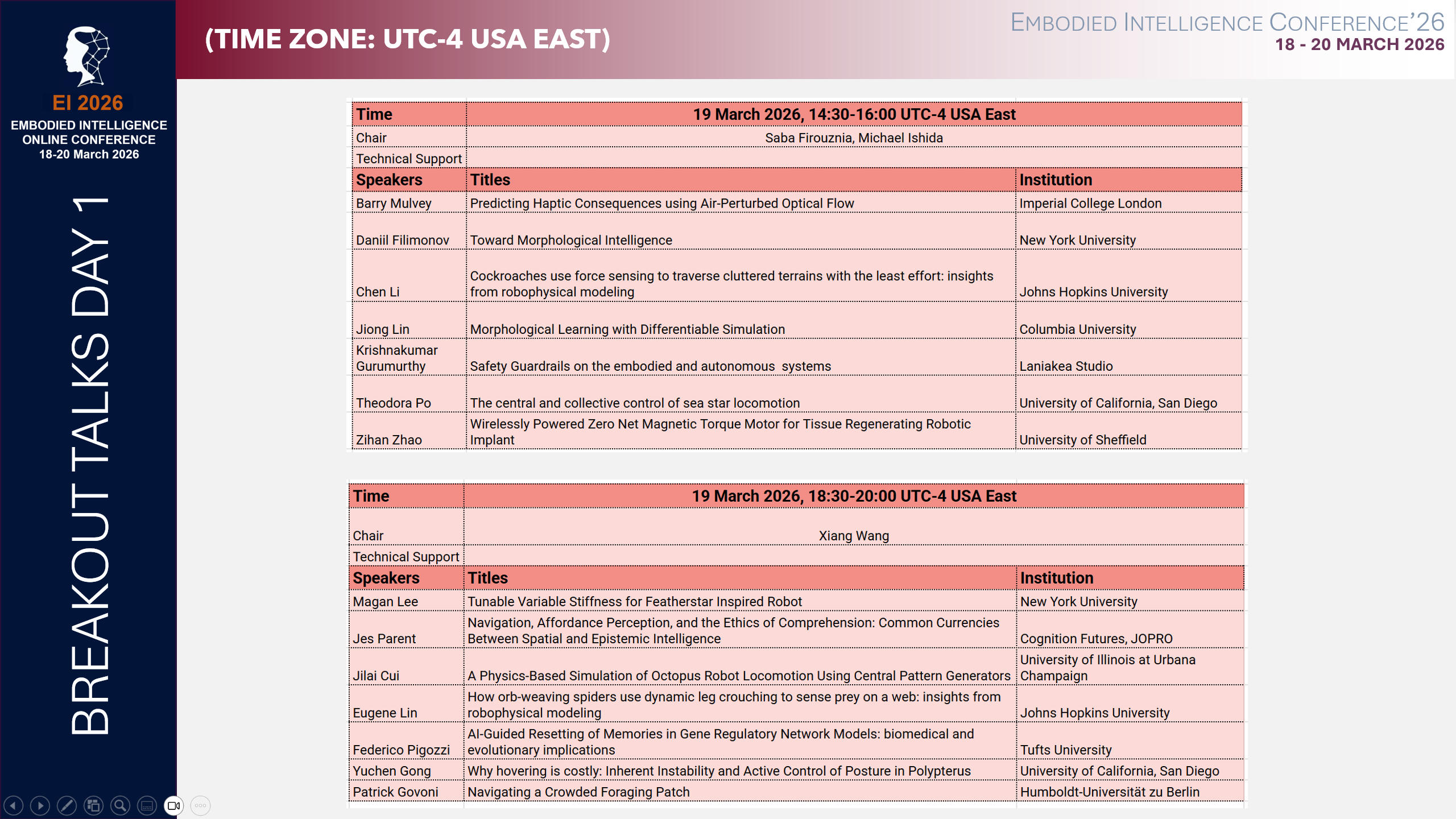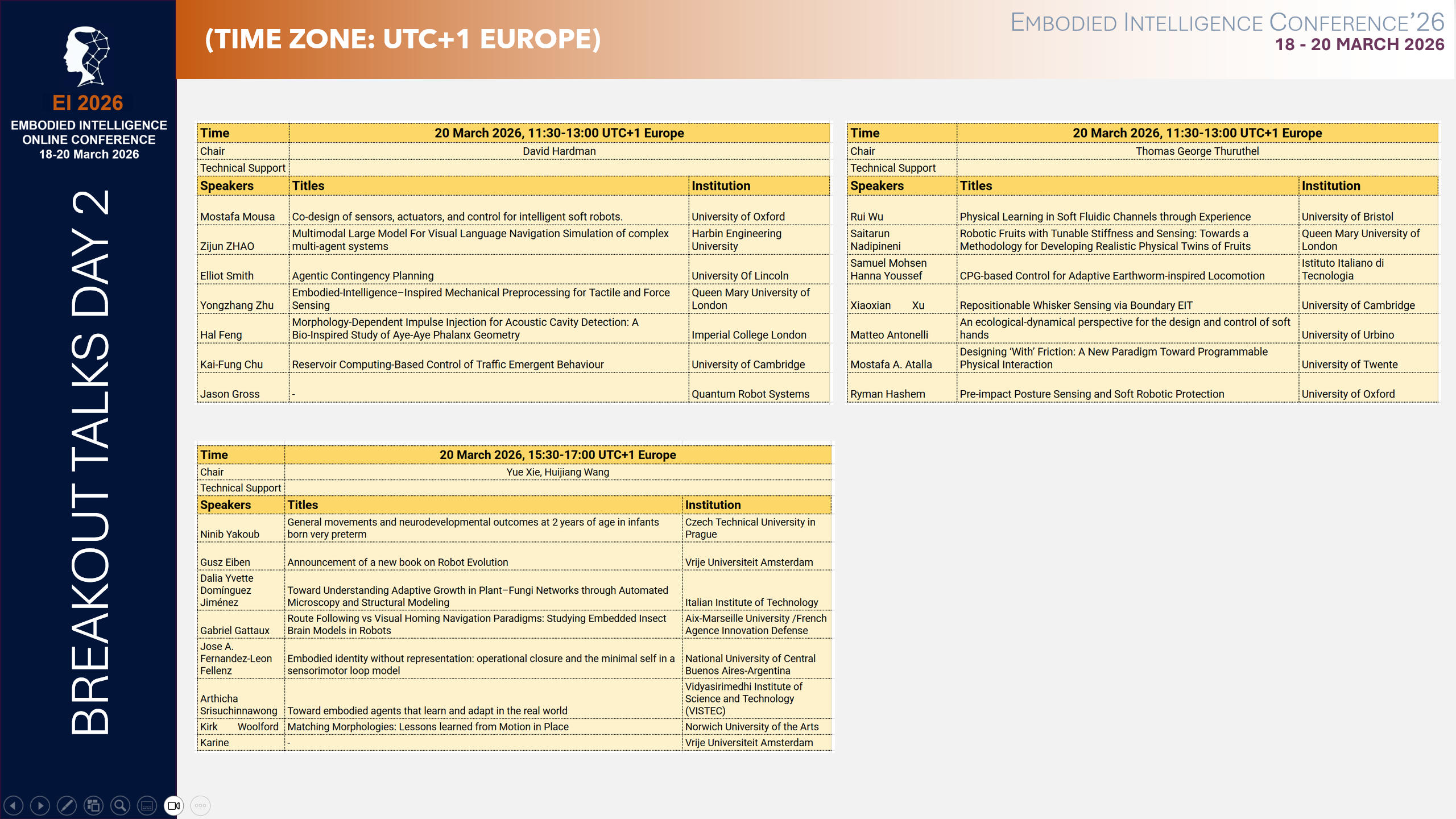 BREAK-OUT SESSIONS: (19-20 March 2026)