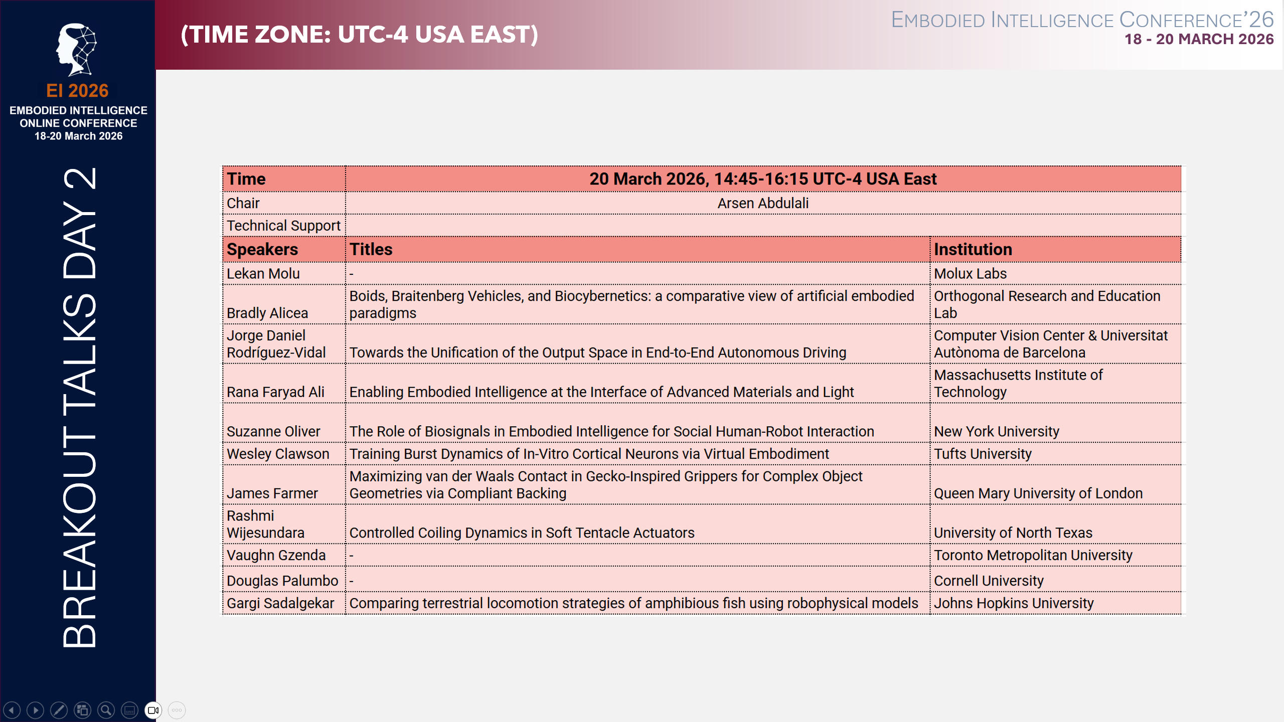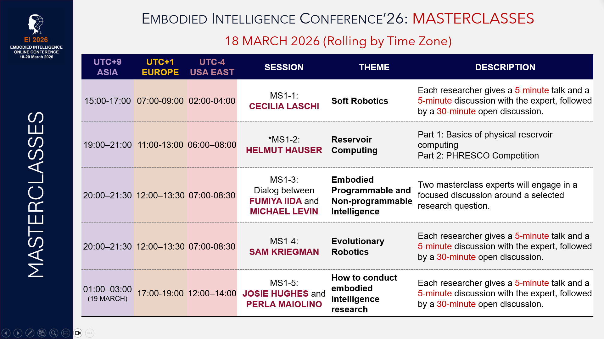 Please note that registration for masterclasses and break-out room sessions is separate from the conference registration. Any conference attendee will be able to observe any masterclass or break-out room presentations of their choice. There is no need to register for observation.