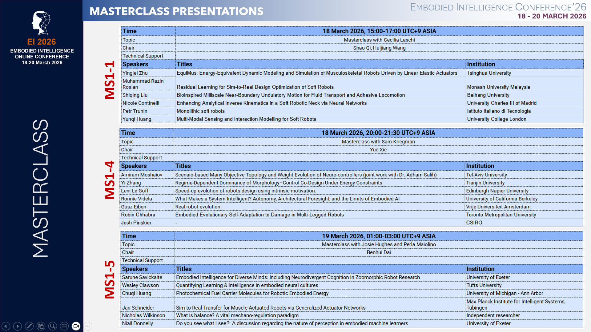 MASTERCLASSES: (18 March 2026)
